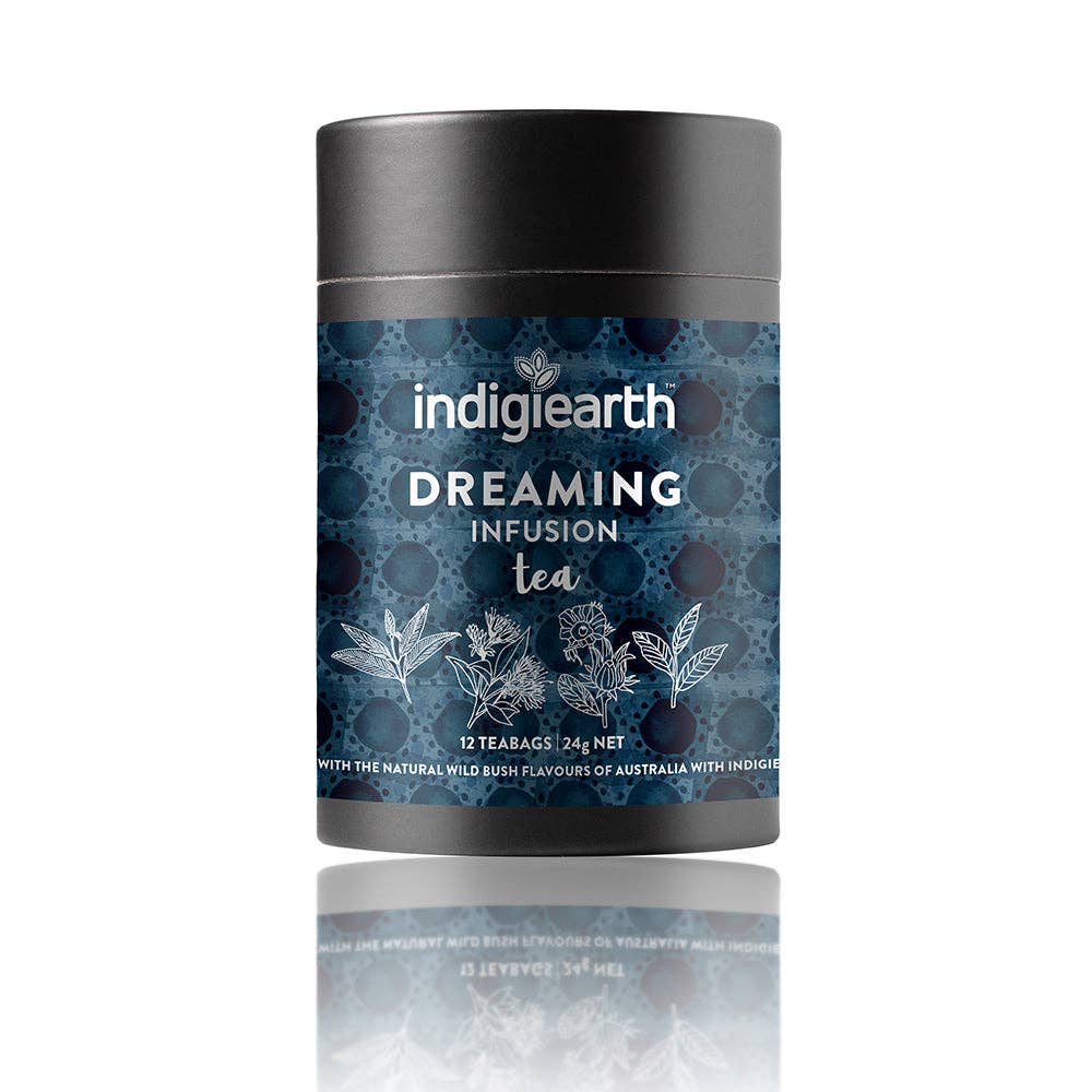 Have a better night’s sleep with a relaxing blend to help you rest through the night. Indigiearth Dreaming Infusion Tea is a blend of Australian Green Tea, Lemon Myrtle leaf, Cinnamon Myrtle leaf and Rosella flowers. Our Dreaming Infusion Tea may be useful for settling the digestive system and is said to be calming and beneficial for insomnia. Start with cold water from the tap for boiling, as this helps enhance the natural Australian native flavours. Use 1 teabag per cup, pour over the boiling water and steep for 1 minute for a pure native flavour or 3-4 minutes if adding sweetener or milk. Enjoy! Also available in loose leaf for those who enjoy brewing a fresh pot.